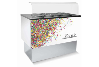 Ledų vitrina FAST POZZETTI 1100: 4 cilindrinės talpos ledų realizavimui + 4 cilindrinės talpos ledams saugoti (7 litrų tūrio). Ventiliuojama vitrina su integruotu kondensavimo įrenginiu ir anti-rotacine sistema, kurios dėka cilindrinės talpos nejuda ir neprasisuka.